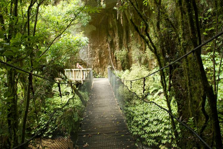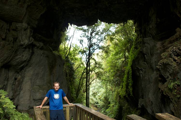 We then went on to Ruakari Cave, which has only been open for about 5 years, as they spent several years and millions of dollars building a suspended bridge (so as to not disrupt the stalgmites) and a very awesome light show.  We had to walk down a long, windy, walkway that reminded us of the circular walkways in the Guggenheim in NY (except with spectacular glowing lights).