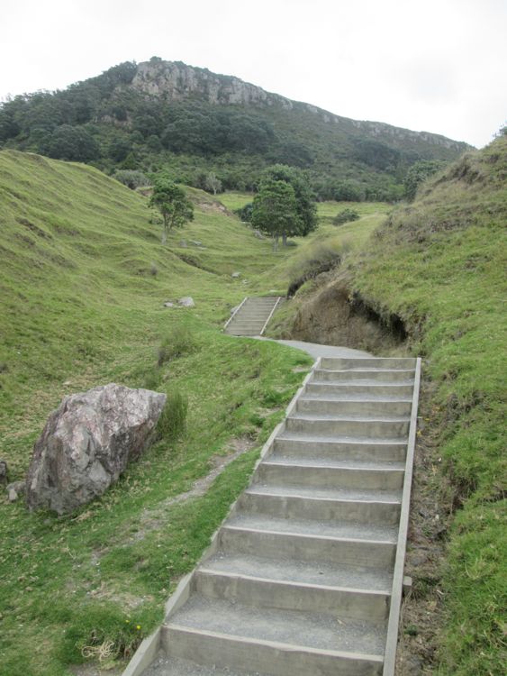 There were lots of boats out in the bay, and we did a track around the entire mountain, which was along the water the entire way, before we climbed to the summit. Even the short hikes in New Zealand can be tough as they are steep. (And they love to give you lots and lots of stairs to climb.)
