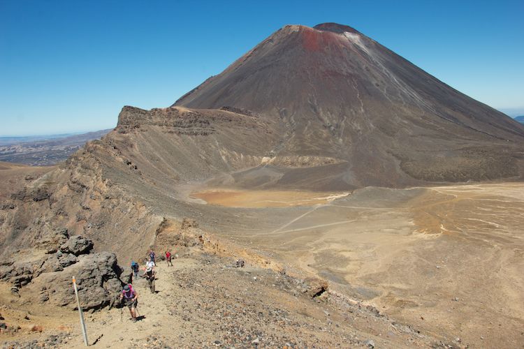 Before descending to the Emerald Lakes, we hiked along the rim of Red Crater, which you can see below, along with Mount Ngauruhoe.  This photo looks back on the steepest part of the hike we came down.
