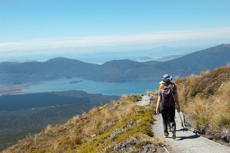 We hiked past another alpine lake, and then we started descending the north side of the volcanoes, where there were great views of Lake Taupo.